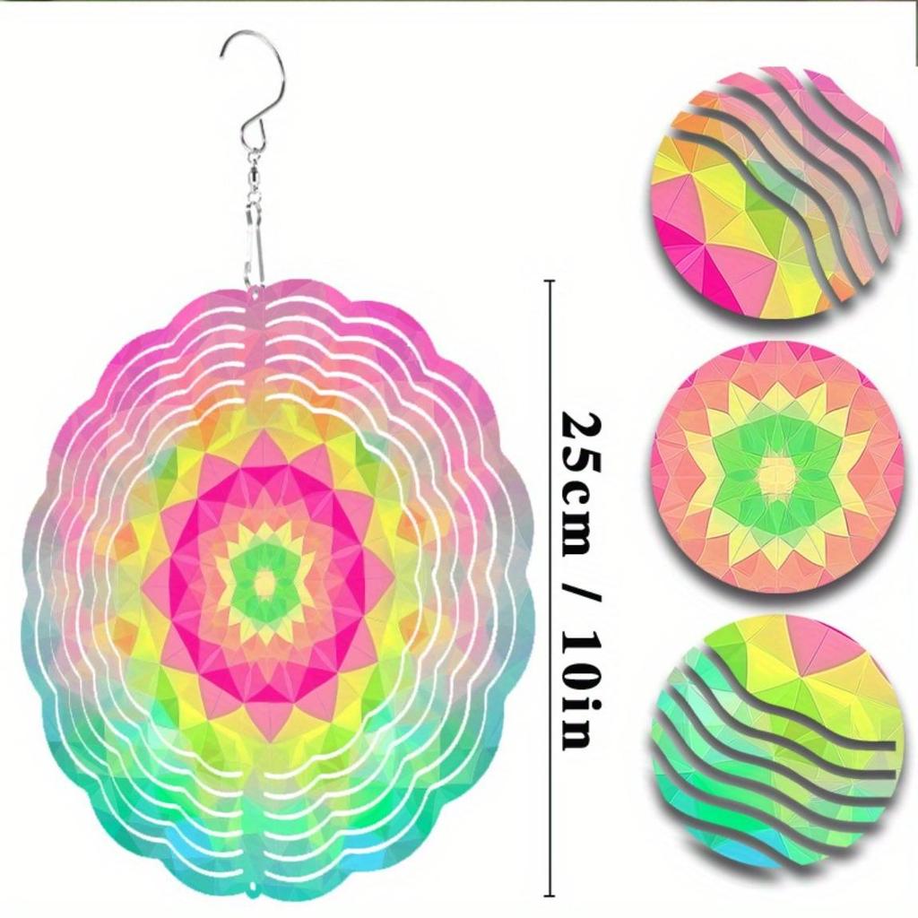 10-Inch Vibrant Metal Wind Spinner with 360° Hanging Hook – Colorful Geometric Design for Garden