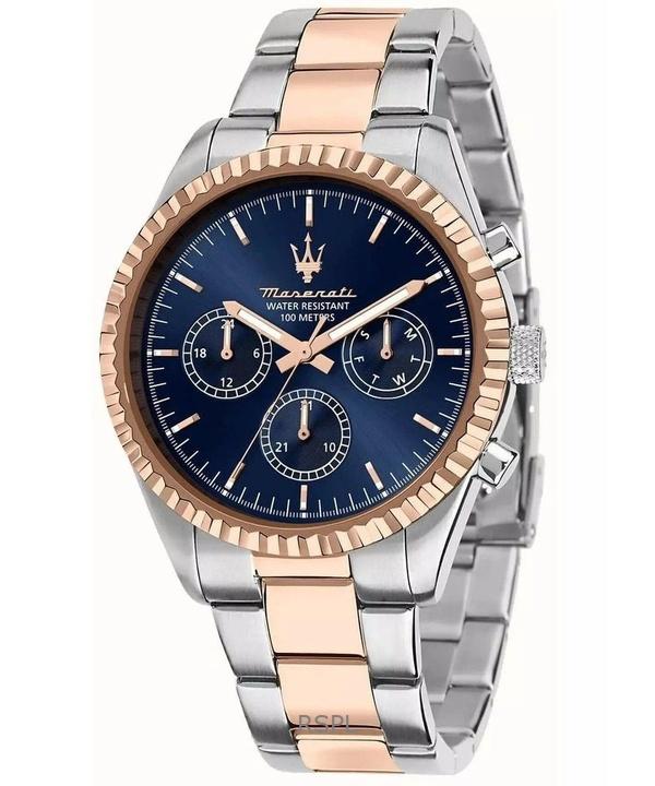 Maserati Competition Two Tone Stainless Steel Blue Sunray Dial Quartz R8853100040 100M Men's Watch — buy online with free worldwide shipping!