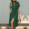 Women's Fashion Summer Spring Solid Color Print Short Sleeve POLO Neck Middle Waistline Casual Dresses — buy online with free worldwide shipping!