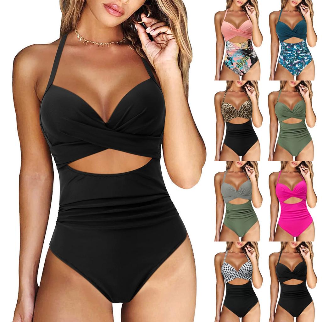 Womens Solid Cutout Swimsuit Cross Back Bathing Suit — buy online with free worldwide shipping!