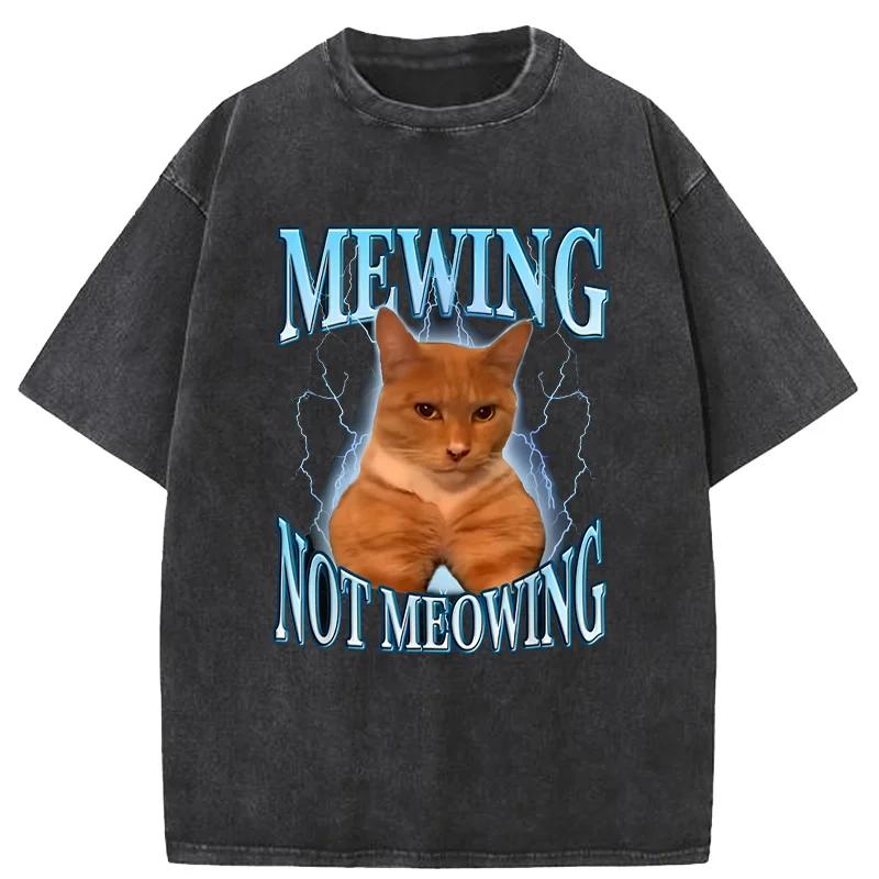 Cute Cats Mewing Not Meowing T-shirts Funny Graphic Washed T Shirt Cotton Soft Unisex O-neck Tee Tops Men Clothes — buy online with free worldwide shipping!
