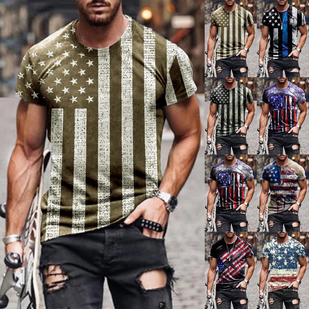 T Shirts Shirts For Men, Men's American Flag T-Shirt Patriotic Tee Short Sleeve Apperal Workout Muscle T Shirts