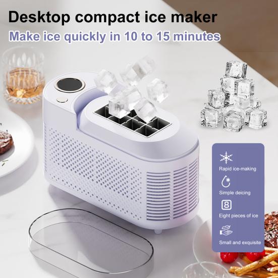 Introducing the desktop ice maker, crafted from food-grade safe materials for clean and hygienic ice production. Perfect for cold drinks or frozen-preservation, catering to various home and office needs. With a simple one-button operation, this ice maker churns out ice in just 15 minutes. Engineered with solid compressor cooling technology for stable performance and durability, ensuring long-term reliability.