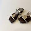 Genuine Leather~ Niche One-word Cool Slippers for Women To Wear Open-toed Square Head Flat Beach Shoes