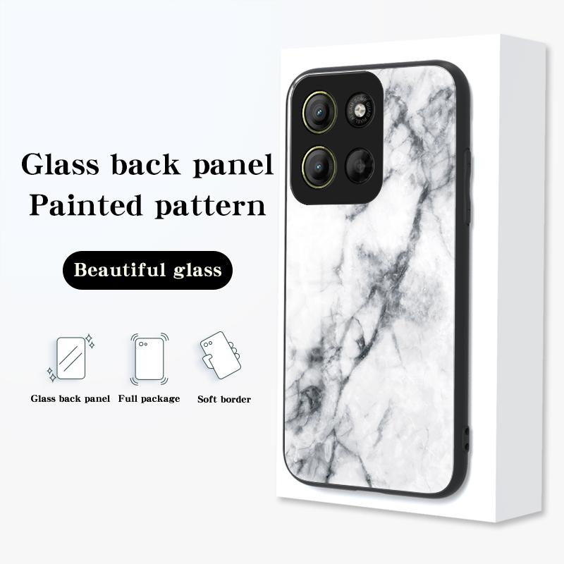 For Motorola Moto G15 4G Case Marble Pattern Tempered Glass+PC+TPU Protective Phone Cover — buy online with free worldwide shipping!