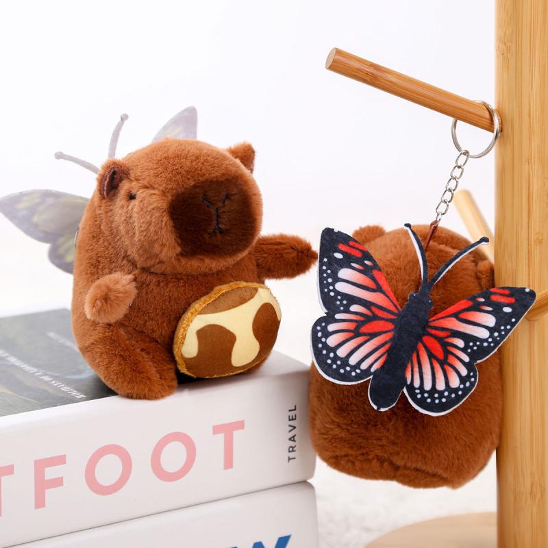 Cute Capybara Back Butterfly Pull-Out Drawing Plush Doll Keychain Backpack Hanging Ornaments — buy online with free worldwide shipping!