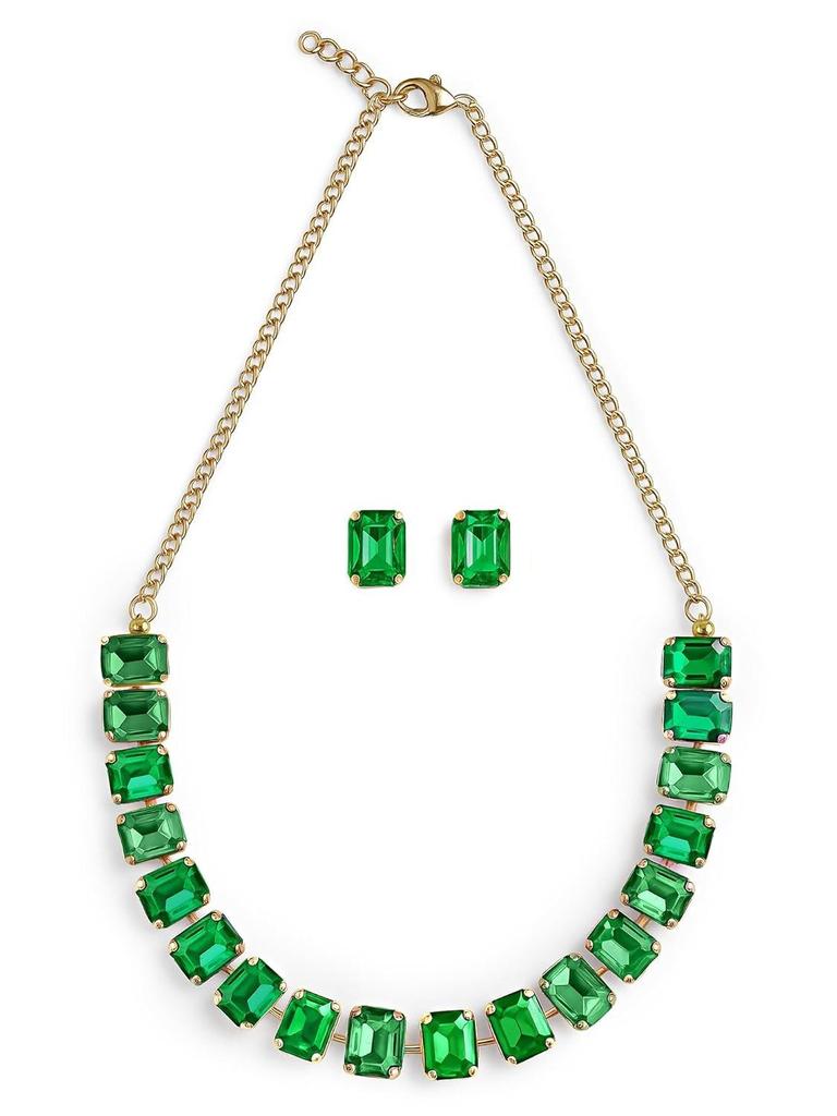 Women Stylish Emerald Necklace Set with Earrings | Latest Fancy Jewelery Set Design for Women & Girls — buy online with free worldwide shipping!