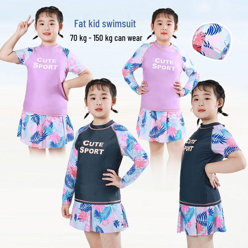 Plus Size Girls' Sun Protection Swimwear, Quick-Dry Split Design for Big Kids — buy online with free worldwide shipping!