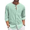 Foreign trade men's cotton and linen shirt long-sleeved T-shirt button-neck casual beach shirt — buy online with free worldwide shipping!