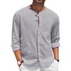 Foreign Trade Men's Cotton and Linen Shirt Long-sleeved T-shirt Button-neck Casual Beach Shirt