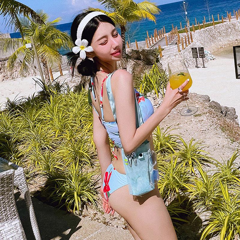 New Korean-Style Retro Print Bikini Set: Sexy Backless, Small Bust Enhancing, Women's Three-Piece Swimsuit — buy products online with free worldwide shipping!