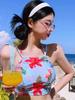 New Korean-Style Retro Print Bikini Set: Sexy Backless, Small Bust Enhancing, Women's Three-Piece Swimsuit