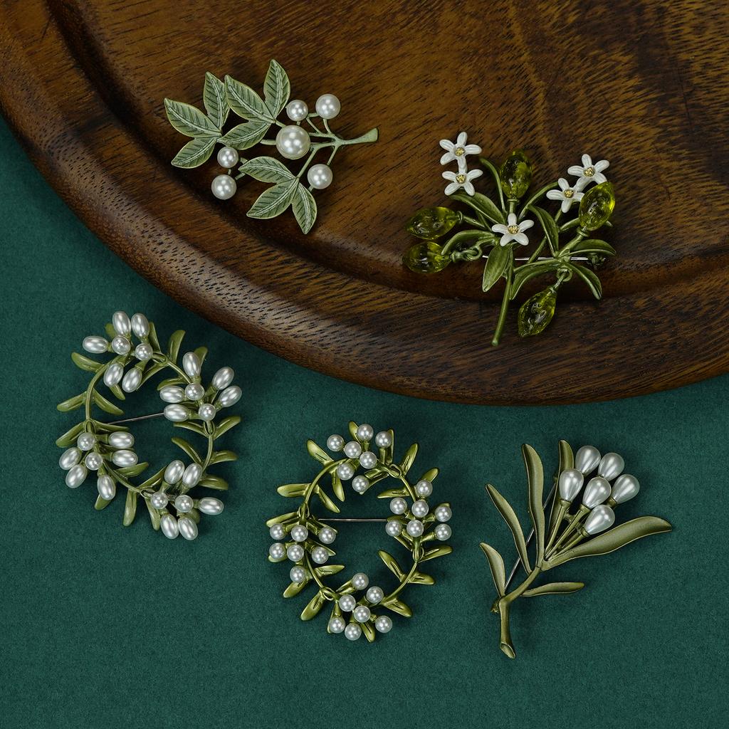 Vintage Women Girls Pearl Leave Enamel Brooches High Quality Exquisite Plant Pins Lady Clothing Coat Accessories Brooch Gift