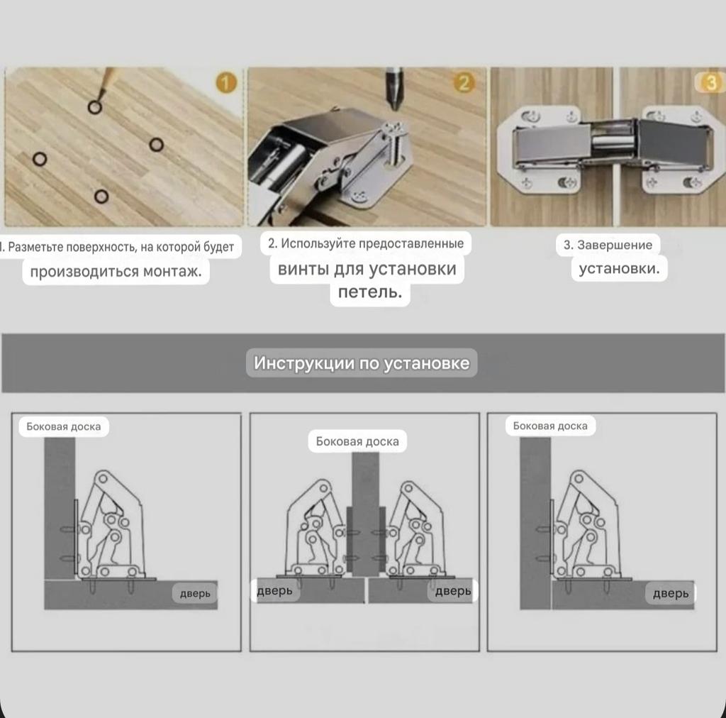 2/6PCS 90 Degree Steel Cabinet Hinges with Screws No-Drilling Buffer Hinge Kitchen Cabinet Cupboard Hinges DIY Furniture Hardware Tools — buy online with free worldwide shipping!