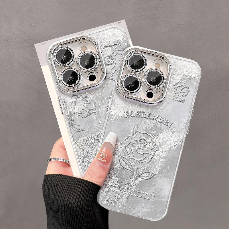 Hollow Rose Suitable for Apple 16pro Mobile Phone Case 15 Full Cover Anti-fall Xiaomi 14/13 High-end Sense 12 Glacier Pattern — buy online with free worldwide shipping!