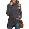 Spring and Autumn Women's Blouse High Neck Bib Side Split Solid Color Long Sleeve Top — buy online with free worldwide shipping!