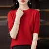 Spring Women's T-shirt Round Neck Knitted T-shirt Solid Colour Hollow Out Tops Knitwear