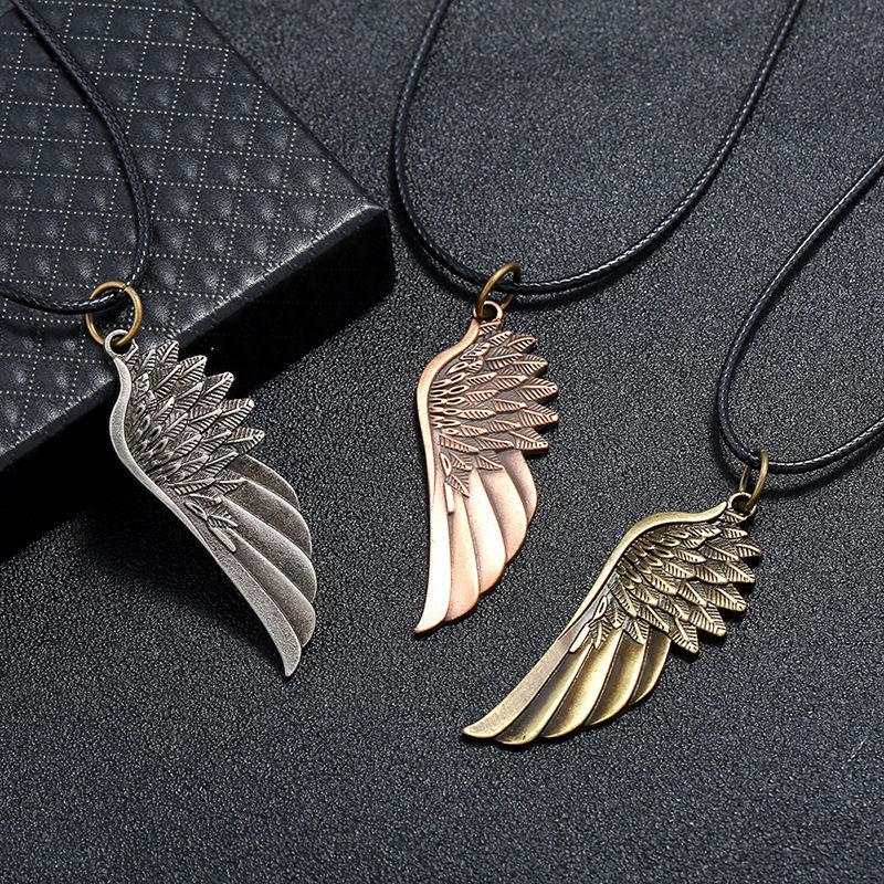 Vintage Angel Wing Pendant Necklace, Simple Alloy Jewelry for Men — buy online with free worldwide shipping!