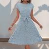 Summer Women's Dress Round Neck Elegant Fashion Printed Pleated Dresses — buy online with free worldwide shipping!