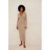 Autumn and Winter Women's Long Sleeve Dress Knitted Deep V Sweater Long Dress