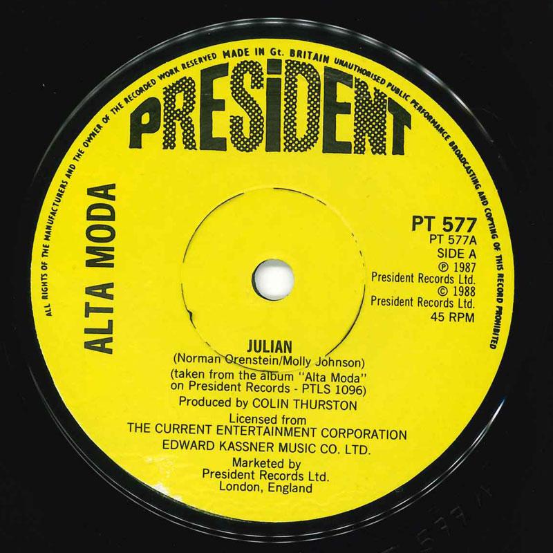 7inch Record ALTA MODA - Julian PT577 President 1987 UK Dance & Electronica Used