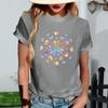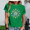 Women's Fashionable Round Neck Casual Retro Print Short Sleeved T-shirt Top