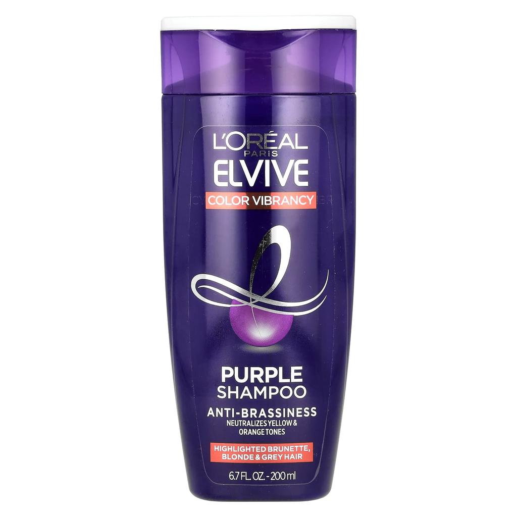 Partially dyed brown, blonde, and gray hair can lighten or even turn a tan over time. Elvive Purple Shampoo is fortified with purple pigment. The color-correcting formula neutralizes unwanted yellow and orange tones, helping to keep your hair color vibrant.