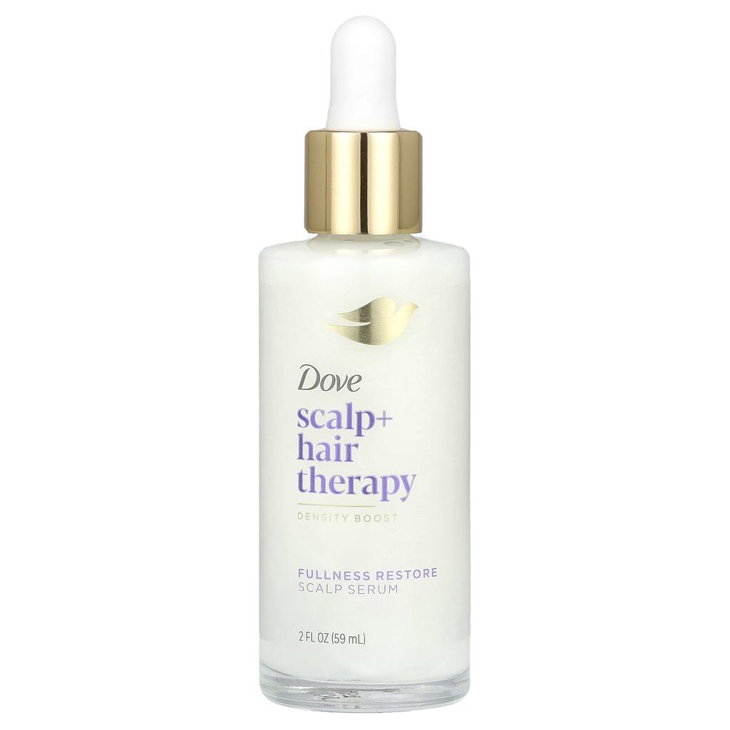 Product Description: Hair Density BoosterNiacinamide 5%Glycerin 10%Zinc + PeptidesZincLightweight Formula89% of Women Experienced Thicker, Stronger Hair*Developed with DermatologistsDid you know that 99% of your hair’s natural nourishment and strength comes from your scalp? The Dove Scalp + Hair Therapy Collection treats your scalp, the source of beautiful hair growth. It gives you thicker, stronger, fuller hair from root to tip. Fullness Restore Scalp SerumA 3-in-1 scalp serum with the following ingredients to nourish your scalp and hairVitamin B3 - Moisturizes the scalpZinc + Peptides - Strengthens hair rootsGlycerin Serum - Visibly increases hair density*9-day independent clinical trial on 74 women