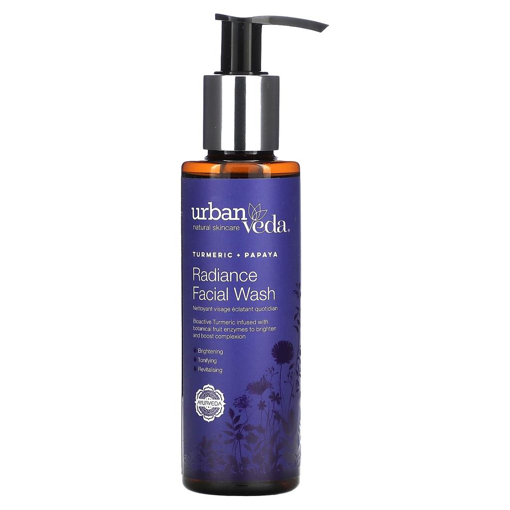 Product Description: Natural Skincare Brightening RelaxingVitality AyurvedaLeaping Bunny®, Cruelty FreeVegan\_{^\_>®\_<^\_} Certified by the Vegetarian Society Bioactive Turmeric with plant fruit enzymes to brighten and radiate the complexion. Natural Ayurvedic SkincareAyurveda is an ancient Indian system of health and wellness that utilizes the holistic and bioactive properties of plants. Radiance Facial WashRadians Facial Wash effectively cleanses and removes urban environmental pollutants. Bioactive Turmeric brightens skin tone, while superfruit extracts rich in fruit enzymes Papaya, Goji Berry and Licorice combine with plant-based cleansers to restore radiance and improve complexion. Phytonutrients including Sweet Orange, Patchouli, Cedarwood, Coriander and Frankincense leave skin soft, supple and hydrated. How to use the product: Apply to wet face daily, gently massage in circular motions, and wash off with cold water to improve skin texture and blood circulation. Ingredients: Purified water (water), cocamidopropyl betaine, lauryl glucoside, disodium laureth sulfosuccinate, sodium chloride, glycerin (vegetable), coco-glucoside, glyceryl oleate, glyceryl laurate, turmeric (Curcuma longa) root extract, licorice (Glycyrrhiza glabra) root extract, kakadu plum (Terminalia arjuna) peel extract, papaya (Carica papaya) fruit extract, wolfberry (Lycium chinensis) fruit extract, orange (Citrus aurantium dulcis) peel oil, pogostemon cablin leaf oil, atlas cedar (Cedrus atlantica) tree oil, coriander (Coriandrum sativum) fruit oil, Texas cedar (Juniperus mexicana) wood oil, Calendula (Tagetes Minuta) Flower Oil, Frankincense (Boswellia carterii) Oil, Lavandula Angustifolia (Lavandula) Oil, Hydroxypropyl Guar Hydroxypropyl Trimonium Chloride, Citric Acid, Acrylates Copolymer, Isostearamide Mipa, Potassium Sorbate, Sodium Benzoate, Sodium Hydroxide, Tetrasodium Glutamate Diacetate, Fragrance, Hexyl Cinnamal*, Limonene. *Present in natural essential oils.