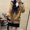 Navy Blue Japanese School Style Women's Cardigan Sweater for Autumn & Winter