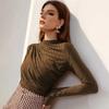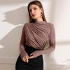Autumn Women Long Sleeve Elastic Pure Color Going Out Tops Ruched Fashion Elegant Softy Slim Crop Top — buy online with free worldwide shipping!