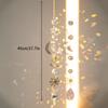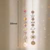 {Mysterious design}: The crystal wind chimes are strung with yellow copper pieces in the shape of stars and moons, adding mystery to the sparkling wind chimes.