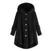 Women Plus Size Button Plush Tops Hooded Loose Cardigan Wool Coat Winter Jacket