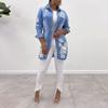 Women Casual Fashion Denim Jacket Long Jean denim jacket with holes showing thin — buy online with free worldwide shipping!