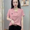 Elegant Women's Summer Cotton T-Shirt with Peter Pan Collar - Stylish Short-Sleeve Slimming Top