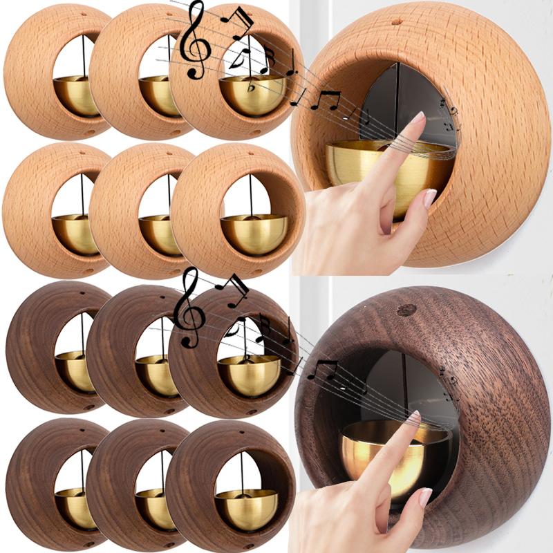 1/4pcs Solid Wooden Doorbell Magnetic Aesthetic Brass Wind Chimes Wireless Doorbells Entrance Door Bell Hanging Pendants Decor