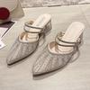 New Spring and Summer Fashion Rhinestone Pearl Pointed High Heels Cool Slippers Versatile Outer Thick Heel Half Drag Women's Shoes