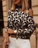 Women Long Sleeve Chain Halter Neck Printed Tops Autumn Winter Button Decorated Fashion — buy online with free worldwide shipping!