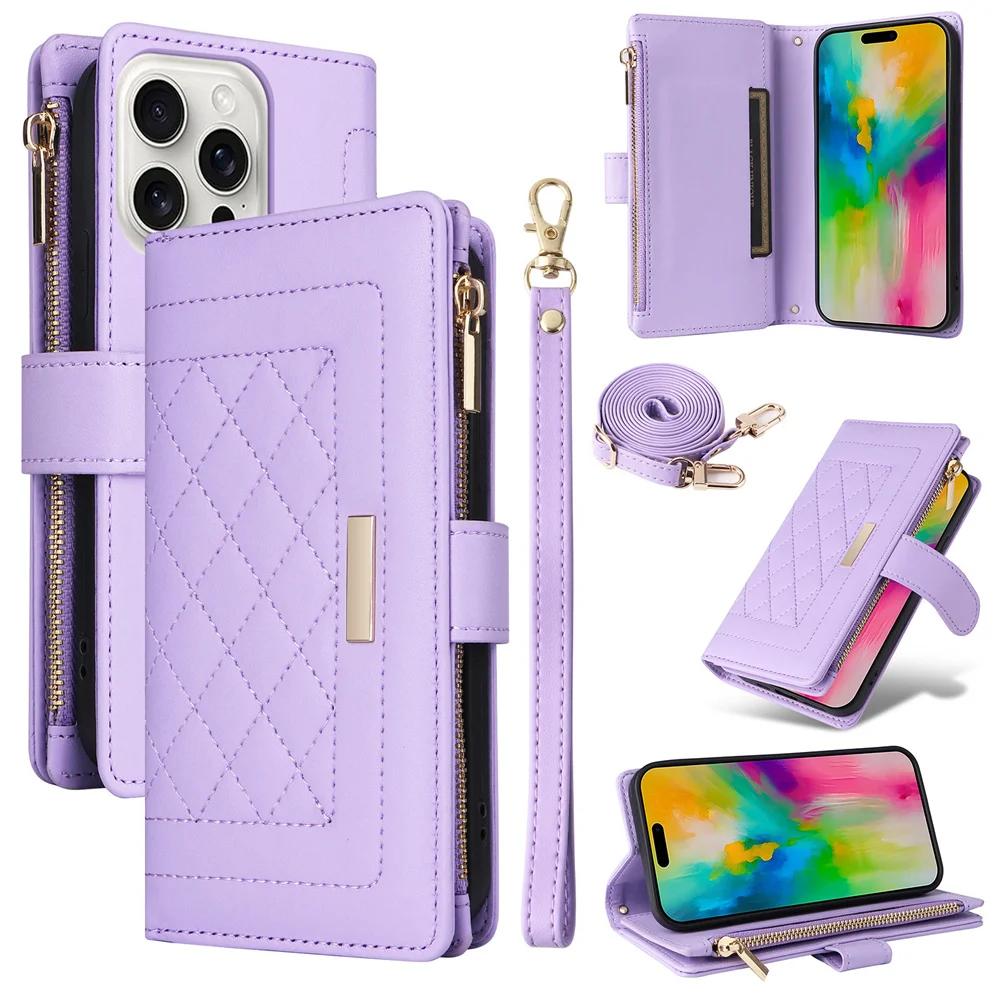 Wrist Strap Zipper Wallet with Card Holder Phone Case for IPhone 16 15 Plus 14 13 12 11 7 8 Pro Max XS X Crossbody Leather Cover