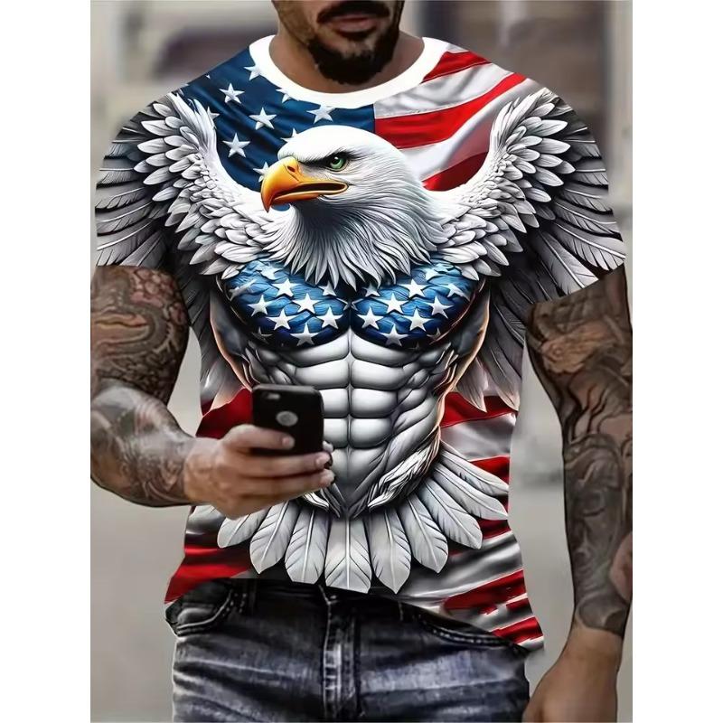 Cool Eagle Pattern T Shirt for Men Clothing 3D Print Flame Eagle Summer Streetwear Trendy Short Sleeve Men Y2k T-Shirts Tops — buy online with free worldwide shipping!