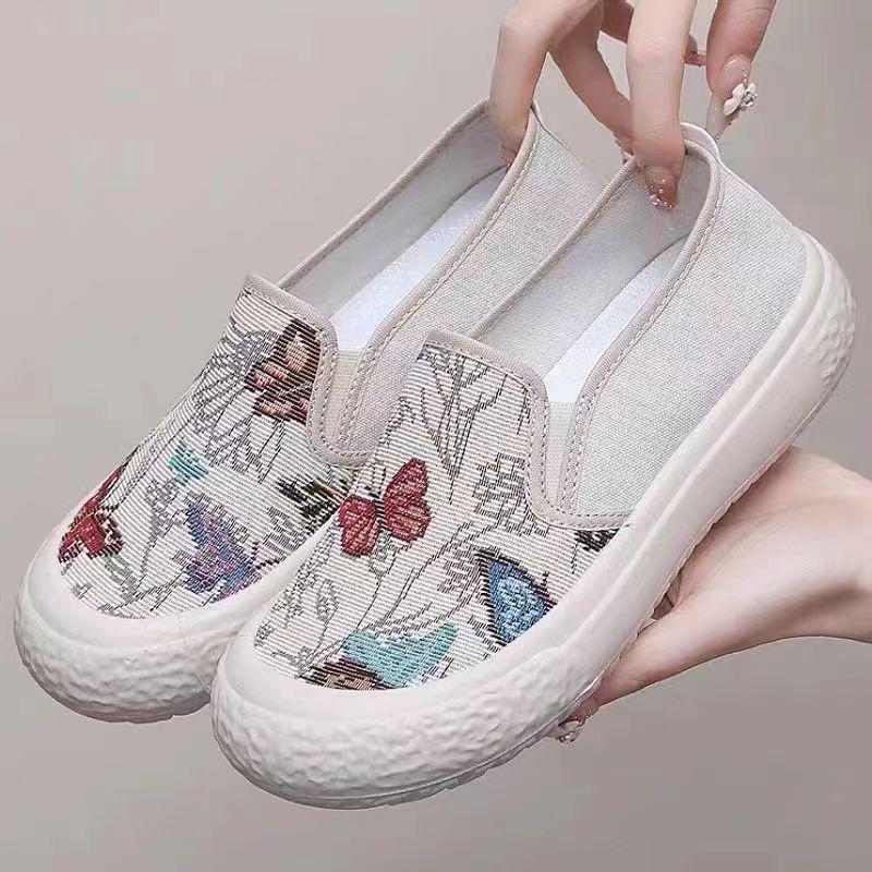 Four Seasons Women's Breathable Canvas Slip on Shoes Soft Thick Soles Non-slip Low Casual Fashionable — buy online with free worldwide shipping!