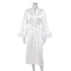 Spring Women's Nightgown Cardigan Feather Satin Robe Loose Long European American Bathrobe Ladies Home Wear