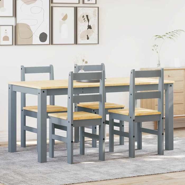 VidaXL Panama Dining Set 5 pcs grey solid pine wood, dining table set, kitchen table and chairs, 3345180 — buy online with free worldwide shipping!