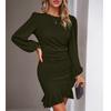 Women Bubble Sleeve Dress Solid Color Fishtail Party Dresses