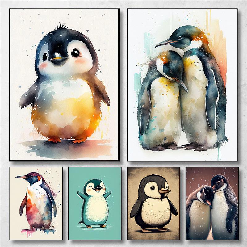 Cute Funny Retro Animal Penguin Couple Animal Art Poster Canvas Painting Wall Prints Picture for Living Room Home Decor