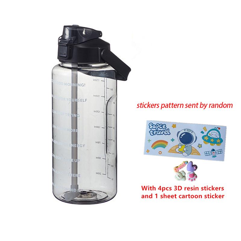 2 Liters Plastic Kettle Large Portable Travel Water Bottle With Straw Sports Fitness Cup Portable Drink Bottle With Sticker