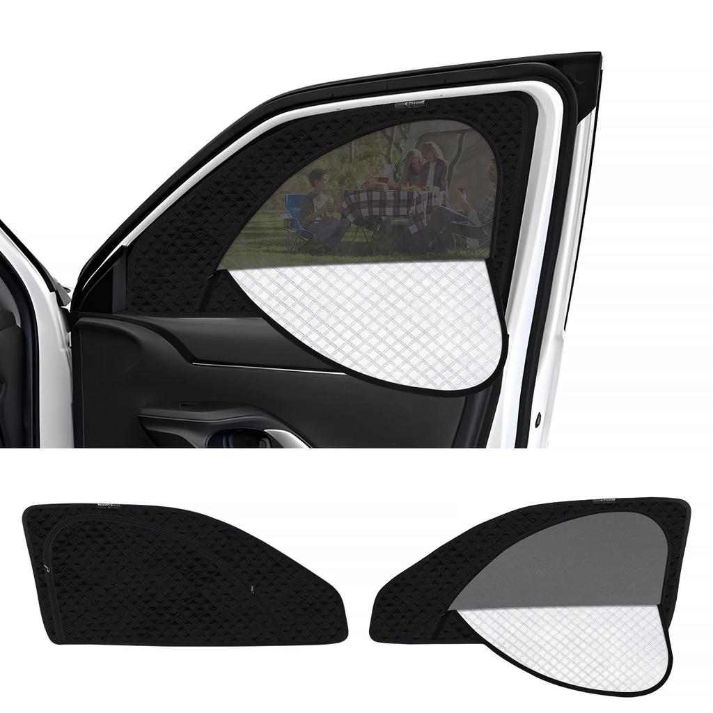 [High durability & high quality material] The fabric is thick, durable, and when you open the zipper, it becomes a mesh that allows air to pass through. Inside the car (three-layer blackout fabric) 1st layer: high-density aluminum foil reflective layer, 2nd layer: special insulating and heat-retaining cotton, 3rd layer: black coating for UV protection. By using silver-painted material on the surface and black insulating material on the back, it reflects strong sunlight in the summer and prevents the temperature inside the car from rising. In winter, it shuts out the cold air from the window, so the heating effect is also improved! It is a car sunshade that can be used all year round. Outside the car (black mesh fabric with fine mesh) It allows air to pass through while preventing mosquitoes and insects from entering.