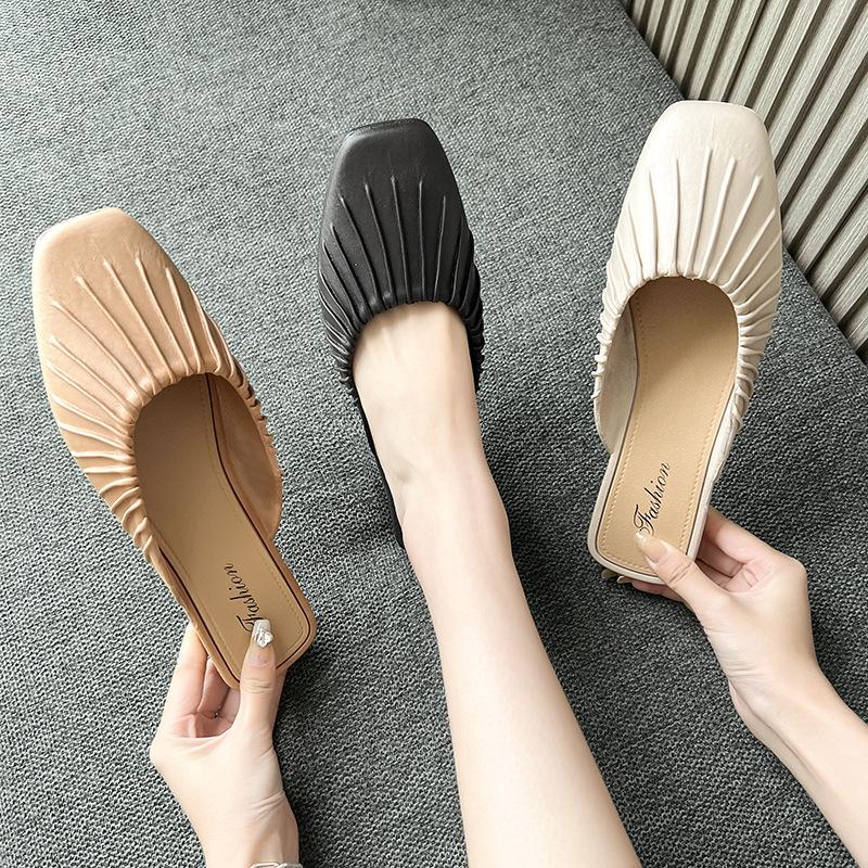 Folded Baotou Half-drag Women's Shoes Casual Versatile Low Heel - .CM Muller Shoes Square Head Four Seasons Shoes Women's Slippers