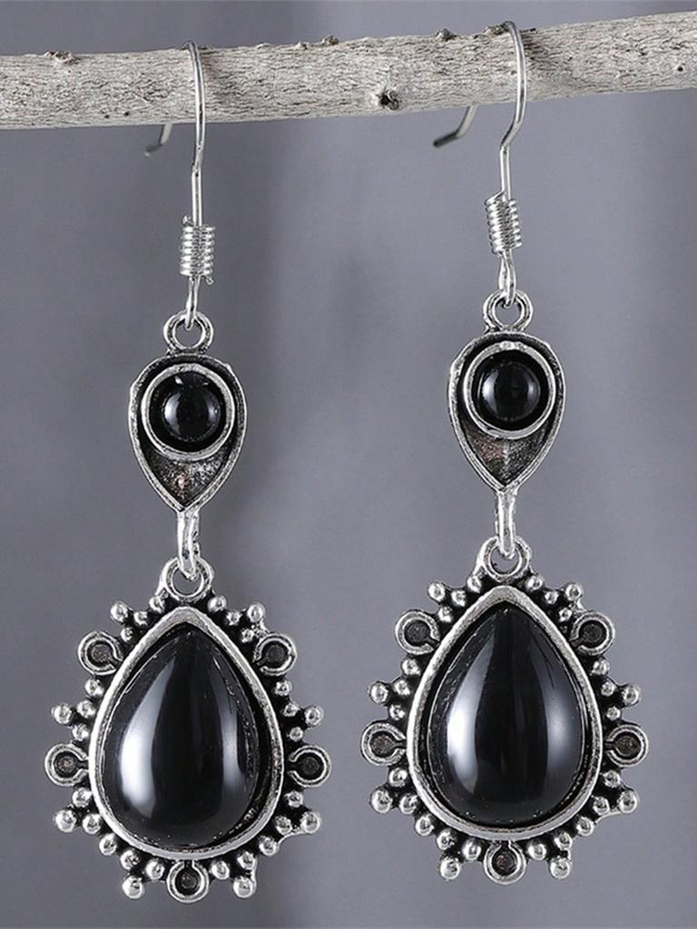 1pair Vintage Black Drop Dangle Earrings,Black Synthetic Gemstone Geometric Triangle Hollow Out Design Boho Jewelry Accessories for Women Daily Wear — buy online with free worldwide shipping!