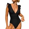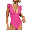 Sexy Monokini One-piece Monokini Stylish Ruffle Edge Monokini Swimsuit for Women V Neck Quick Dry Detachable Pads Bikini Set